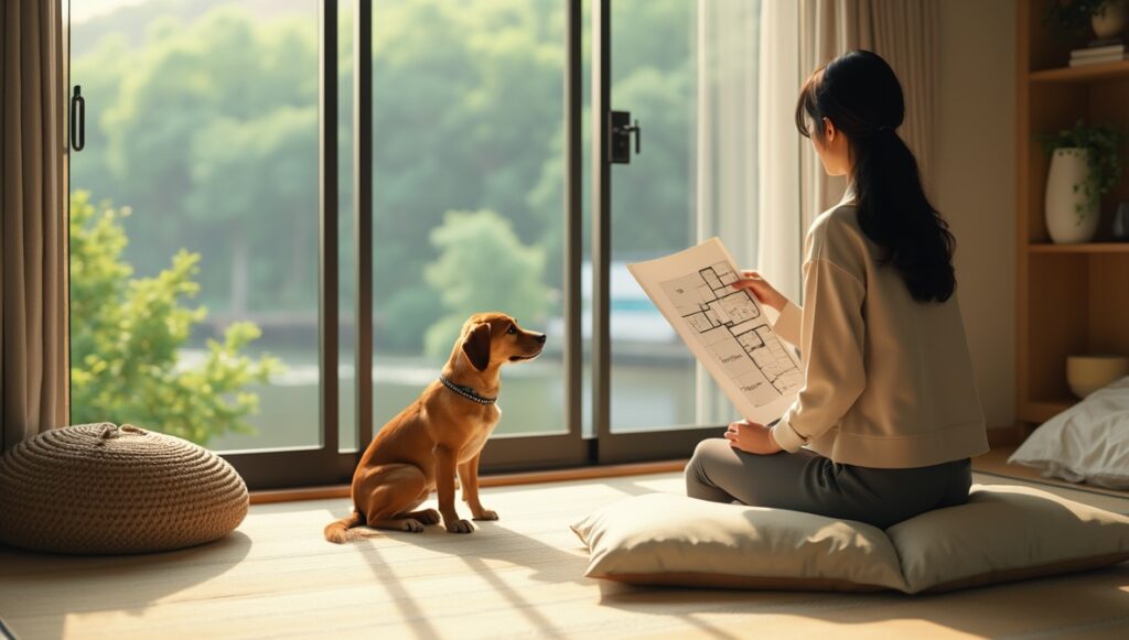 間取りについては、ペットの動線を確保できる1LDKや2DK以上の物件が好まれる傾向にあります。特に京都宇治では、リビングとつながった広めのバルコニーがある物件が人気です。ペットが日光浴をしたり、外の空気を感じられる空間が確保できるためです。